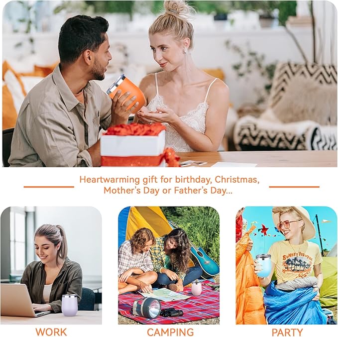 - Suitable for various Occasions: Whether you're at home, in the office, at the beach, or at a party, our wine tumbler with lid are perfectly suited for enjoying coffee, tea, juice, cocktails, and other beverages. Insulated wine tumblers also make ideal gifts for birthdays, holidays, weddings, and other occasions, perfect for friends, family, and colleagues.