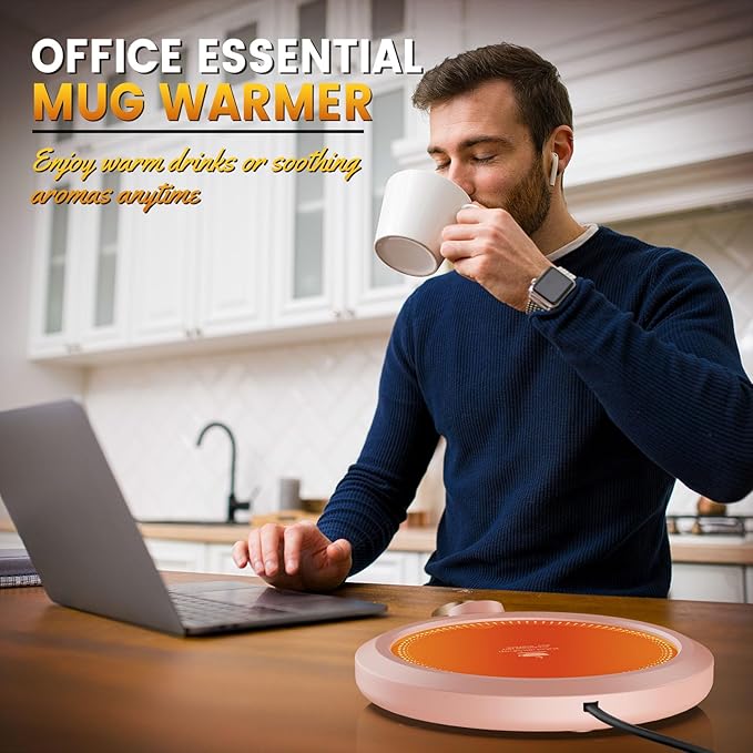 - 【Smart Gravity Sensor Technology】Our coffee mug heater adopts advanced intelligent gravity sensor technology to automatically detect the placement status of the cup. When the cup is picked up, the mug warmer will automatically pause; when the cup is put back, the coffee mug warmer will immediately resume heating. This effectively prevents dry burning and prolongs the service life of the device