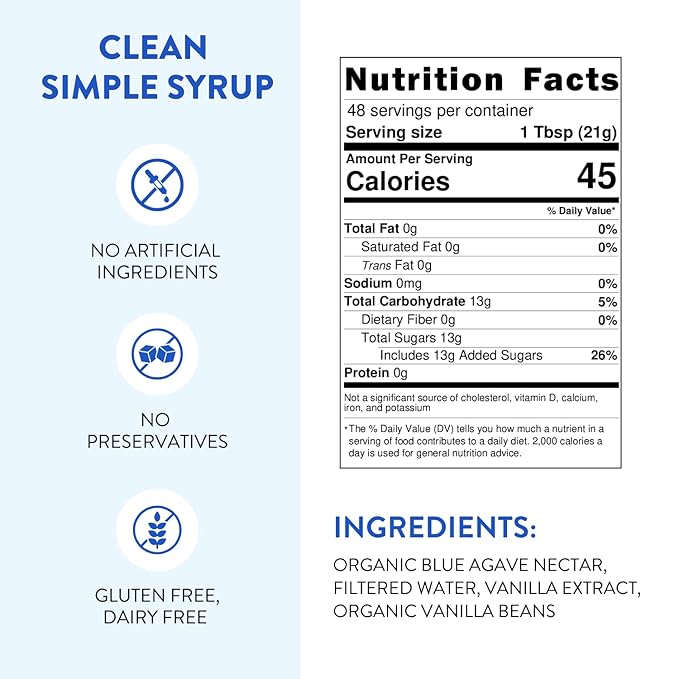 - 🍯 REAL AGAVE & VANILLA: Our vanilla simple syrup is sweetened with blue agave nectar and infused with real vanilla for an authentic and healthier alternative to traditional syrups. Tuturu is a superior simple syrup that will elevate any coffee drink or cocktail and give any drink an authentic vanilla bean taste.