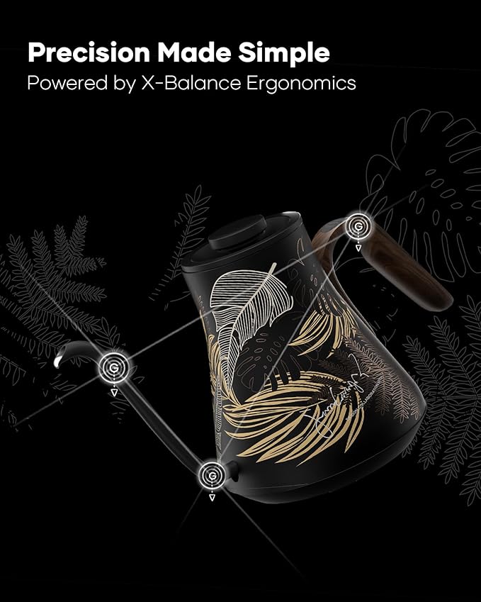 - Precision Heating & Pour Control: The intelligent base maintains your set temperature within ±1℉ for optimal extraction. The S-shaped spout delivers a steady, controlled pour - ensuring consistency in every cup.
