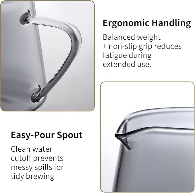 - Smoked Color Design with Modern Aesthetic : The smoky glass adds a modern, minimalist look to your kitchen or coffee station, making it a stylish yet functional addition to your coffee brewing routine.