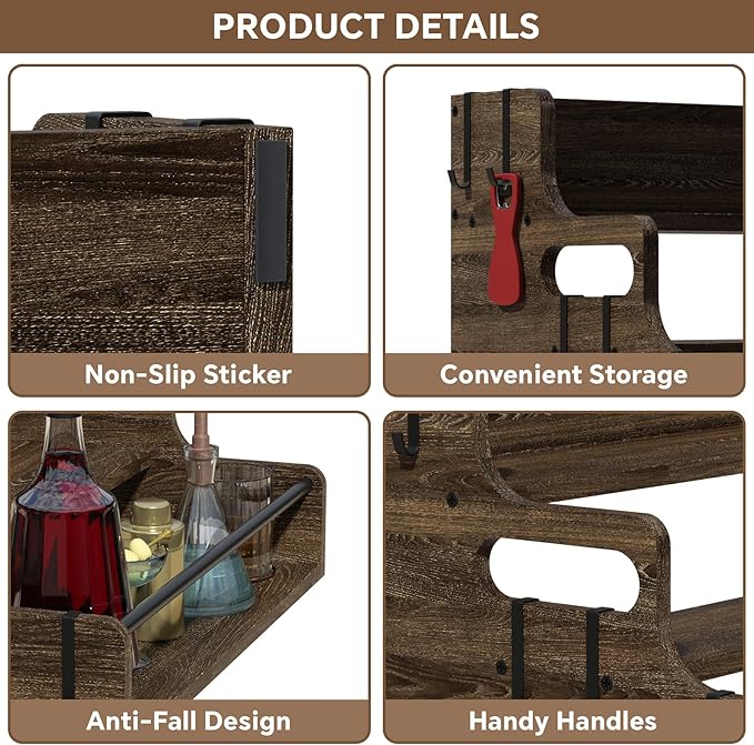 - Durable Wood Frame with Rustic Charm Crafted from premium wood, this liquor shelf brings vintage appeal and reliable support, Perfect for displaying spirits in a bar liquor shelf, whiskey bar, or alcohol cabinet for home
