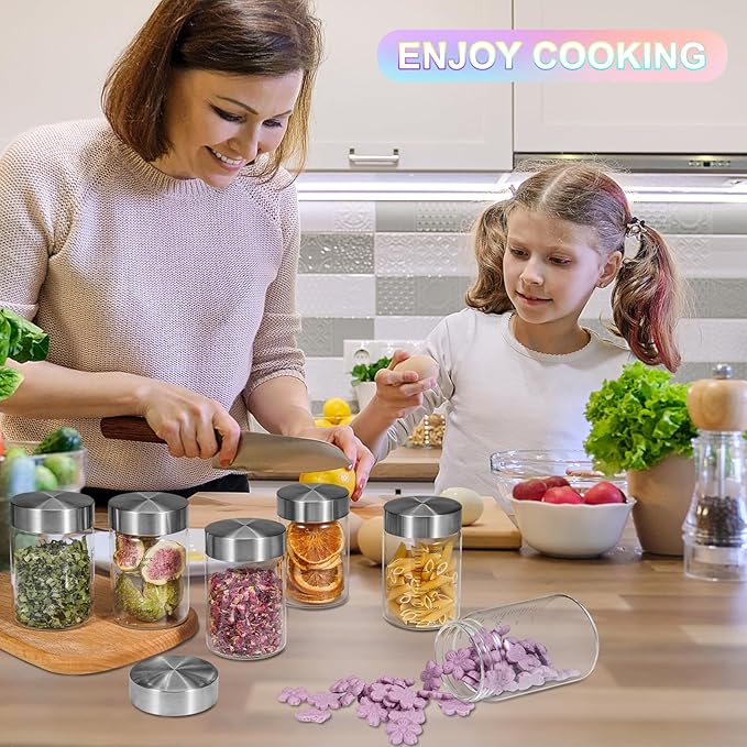 - - 【WIDE APPLICATIONS】 Small glass canisters for pantry organization are suitable for storing various dried ingredients to retain their freshness, with clear glass jars, you can easily see inside and quickly find the ingredients you need.Glass jars with wood lids perfect for storing dry food , such as,cookies,dried beans,pepper, oatmeal,jams, chutneys, rice, flour, tea, coffee, biscuits, candy,cheese,flour, sugar, seeds,etc. Keep your kitchen tidy and safe,saving space and convenient .