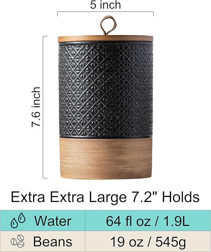 - Heavy-Duty Ceramic Build: This 64oz ceramic coffee canister means business, made from tough, high-quality ceramic with a smooth embossed patterns that’s a snap to clean. Dishwasher-safe for easy maintenance—because big jars need easy care too