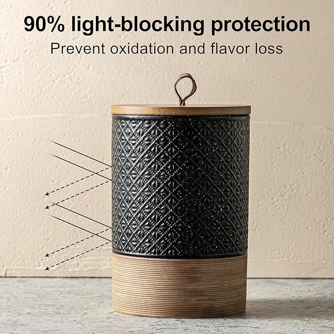- Ultra-Tight Wooden Lid: The wooden lid with a strong rubber gasket creates an unbeatable airtight seal, keeping air, moisture, and odors far away from your coffee beans and ground coffee, locking in freshness for longer