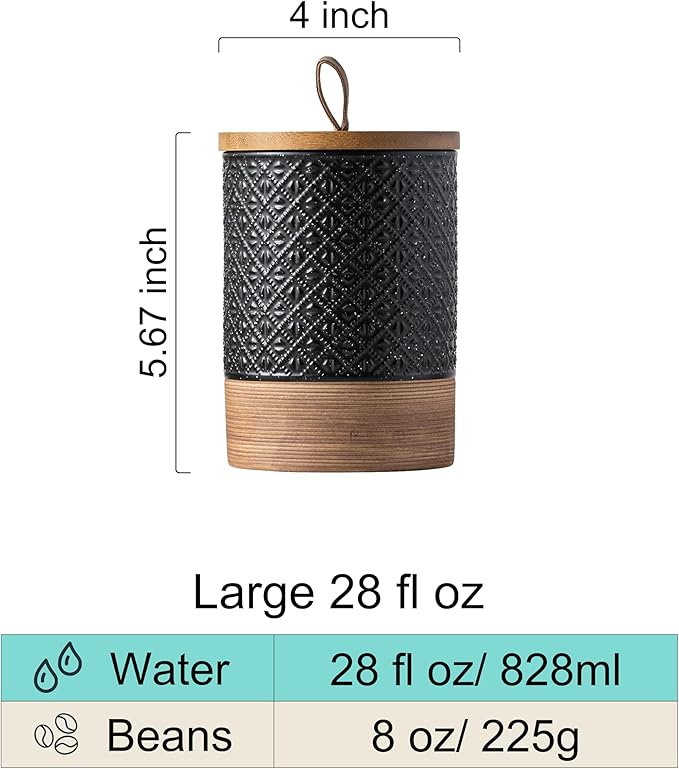 - High-Quality Ceramic Make: This 28oz ceramic coffee canister is crafted from premium ceramic, boasting lovely embossed patterns and easy to clean—dishwasher-safe for lazy cleanup days