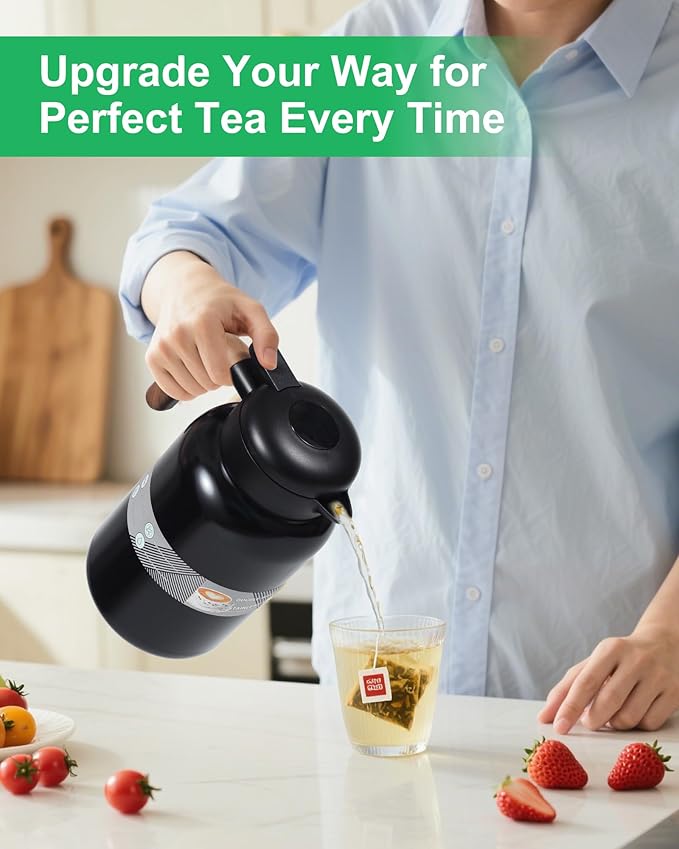 - 【HYDRO TRANSFER PRINTING FOR HANDLE & EASY TO USE INSULATED CARAFE 】Our thermos with one-hand pouring your hot drinks come out with ease whether it be hot tea, cold milk, juice or mulled wine. It's safe to touch the stainless steel coffee carafe exterior body either it is a hot or cold beverage inside, as the temperature is locked in and Tea thermal body stays cool. Our tea pot to keep coffee hot is non-slip base keeps the insulated coffee carafe right where you placed on it.