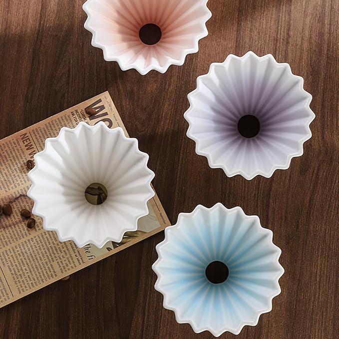 - Unique Origami Rib Design – The ribbed and folded structure optimizes water flow, prevents clogging, and ensures even saturation of coffee grounds; compatible with various filter paper types (V cone filters,basket filter etc.).