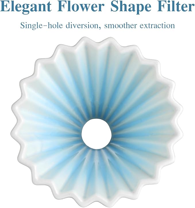 - Unique Origami Rib Design – The ribbed and folded structure optimizes water flow, prevents clogging, and ensures even saturation of coffee grounds; compatible with various filter paper types (V cone filters,basket filter etc.).