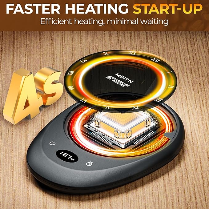 - 【Quality coffee accessories gifts】Our coffee mug warmer is crafted from quality materials and easy to clean with just a damp cloth. Its lightweight design ensures easy storage and carry between home, office, or travel settings.Whether it's a gift for yourself or a loved one, MEION cup warmer is thoughtful choice.