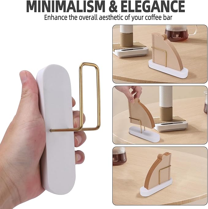 - 【High-Quality Materials】 Coffee Filter Holder is crafted from premium marble base and brass frame, combining aesthetics, sustainability, durability, practicality, convenience, and visual appeal.