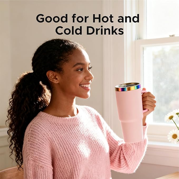 - Effortless On-the-Go Handling: With added handles, our stainless steel travel mugs are easy to hold and carry wherever you go. Juggle your keys and phone with ease while securely holding your tumbler on your way to a morning yoga class