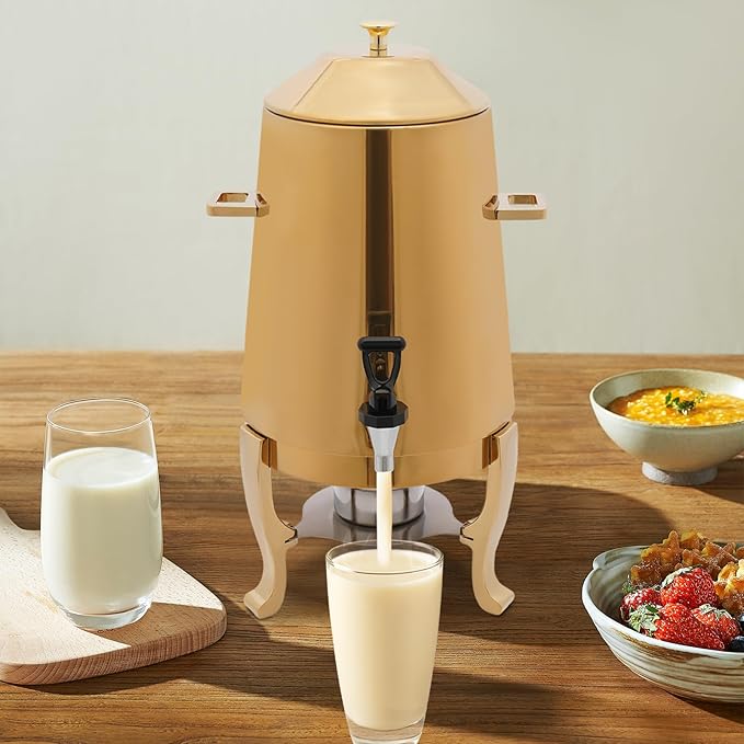 - 【Application】Stainless steel hot beverage drink dispenser can be used in hotels, canteens, restaurants, family gatherings, banquets, weddings, parties and other occasions to hold milk, coffee, soy milk, flower tea, fruit juice and various cold and hot beverages.